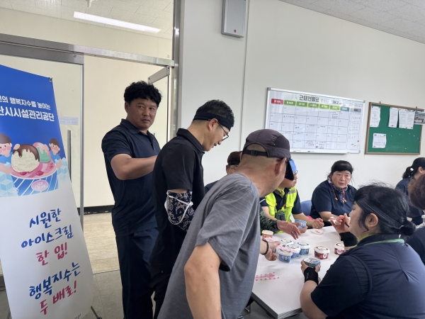 [충청뉴스큐] 아산시시설관리공단은 7월 31일 연일 이어지는 폭염 속에서 공단 전 직원들을 격려하고자 컵아이스크림을 지급했다고 밝혔다.