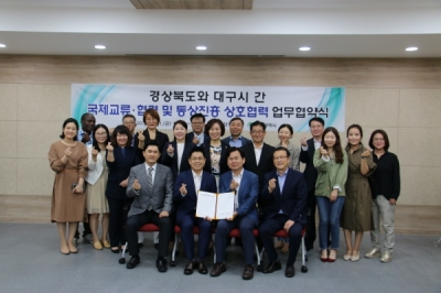 [충청뉴스큐] 경상북도와 대구시는 31일 도청 대구청사에서 김호진 경북도 일자리경제산업실장과 안중곤 대구시 일자리투자국장을 비롯한 관계공무원이 참석한 가운데 ‘국제교류·협력 및 통상진흥 상호협력’에 관한 업무협약을 체결했다.
