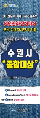수원시는 국회사무처 소관 사단법인 ‘청년과 미래’가 주관하고 여성가족부가 후원하는 ‘2019 청년친화헌정대상’에서 기초지방자치단체 부문 종합대상을 받았다. 시상식은 오는 21일 여의도 공원에서 열리는 ‘제3회 대한민국 청년의 날’ 행사에서 열린다.