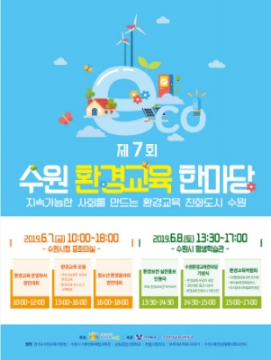 8일에는 팔달구 수원시평생학습관에서 환경보전 실천홍보 인형극 ‘환경파괴군 마구마구’가 상연되고, 수원환경교육 전시회·환경체험부스 등을 체험할 수 있는 ‘환경교육 박람회’가 열린다. 박람회 참가자에게는 친환경 EM 발효액을 증정한다.