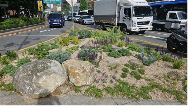 [충청뉴스큐] 교차로에 설치돼 보행자의 안전한 횡단을 돕는 ‘교통섬’, 가로수 아래 작은 공간, 인도와 차도 사이 자투리 공간까지 서울 시내 곳곳이 빈틈없이 매력적인 정원으로 채워지고 있다.