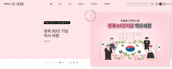 [충청뉴스큐] 한국관광공사는 광복 80년을 맞이해 오는 8월 31일까지 국내여행 정보 통합 플랫폼 ‘대한민국 구석구석’에서 광복절 특집전을 선보인다.
