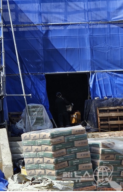 충청뉴스Q 취재진은 지난 14일 현장을 방문 공사현장의 근로자가 안전보호구 착용없이 작업을 하고있는 모습을 확인했다.