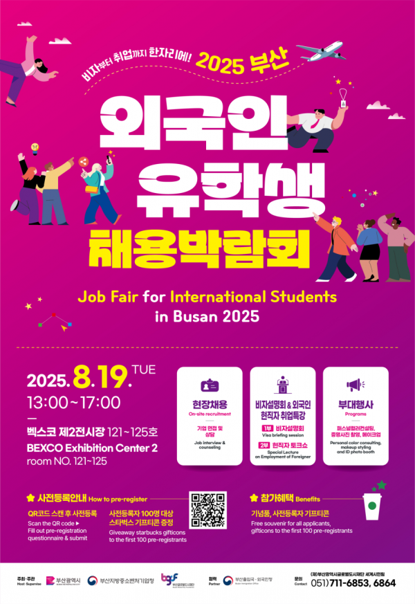 [충청뉴스큐] 부산시는 내일 오후 1시부터 5시까지 벡스코 제2전시장에서 '2025 외국인 유학생 채용박람회'를 개최한다고 밝혔다.