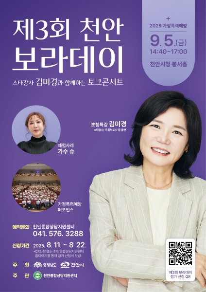 [충청뉴스큐] 천안시는 다음 달 5일 시청 봉서홀에서 ‘제3회 천안 보라데이’ 행사를 개최한다고 18일 밝혔다.