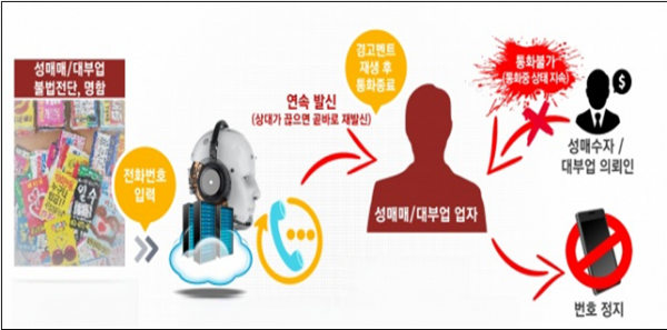 ‘자동경고발신시스템’ 이란 불법 선정성 광고물 등 금지광고물에 적힌 전화번호가 실질적으로 활용되지 못하고 통화가 어렵도록 일정 시간에 따라 자동·반복적으로 전화를 발신하는 시스템이다.