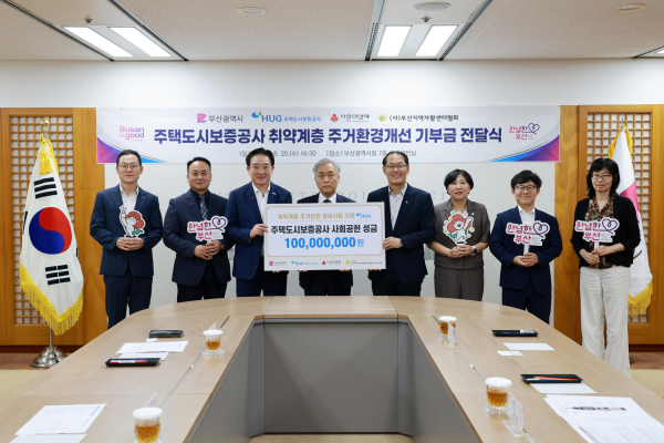 [충청뉴스큐] 부산시는 어제 오후 4시 30분 시청 국제의전실에서 주택도시보증공사 취약계층 주거환경개선 기부금 전달식을 개최했다고 밝혔다.