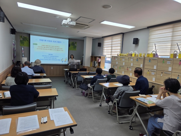 1회기에는 외부 전문 강사를 초청해 치매 가족의 역할 이해 교육을 진행했으며 2회기에는 돌봄 부담 교육과 치매 가족 자가 건강관리 책자 소개 등이 이루어질 예정이다.