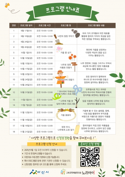 [충청뉴스큐] 아산시가 오는 9월부터 11월까지 충남 제1호 지방정원인 신정호정원에서 가을철 정원문화체험 프로그램을 운영한다.