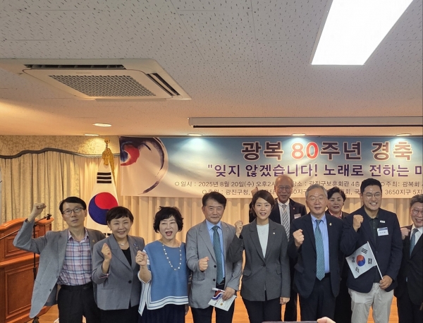 [충청뉴스큐] 서울시의회 교육위원회 전병주 부위원장은 20일 광진구보훈회관에서 열린 광복회서울시지부 광진구지회 주최 ‘광복 80주년 경축식’에 참석해 광복의 의미를 되새기고 순국선열의 희생을 기리는 자리에 함께했다.