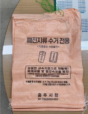 [충청뉴스큐] 충주시는 방치된 폐전지류의 위험사고를 예방하고 원활한 재활용을 위해 읍면동 마을회관 등에 폐전지류 수거 전용 마대를 보급했으며 10월 31일까지 ‘폐전지류 집중 수거 기간’을 운영한다고 밝혔다.