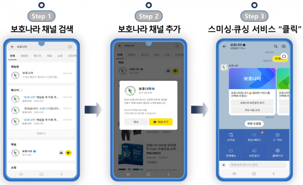 인터넷주소를 포함하고 있는 의심스러운 문자를 받은 경우에는 카카오톡 ‘보호나라’ 채널을 실행한 후 해당 문자를 복사·붙여넣기 해서 정상 문자인지 여부를 확인할 수도 있다.