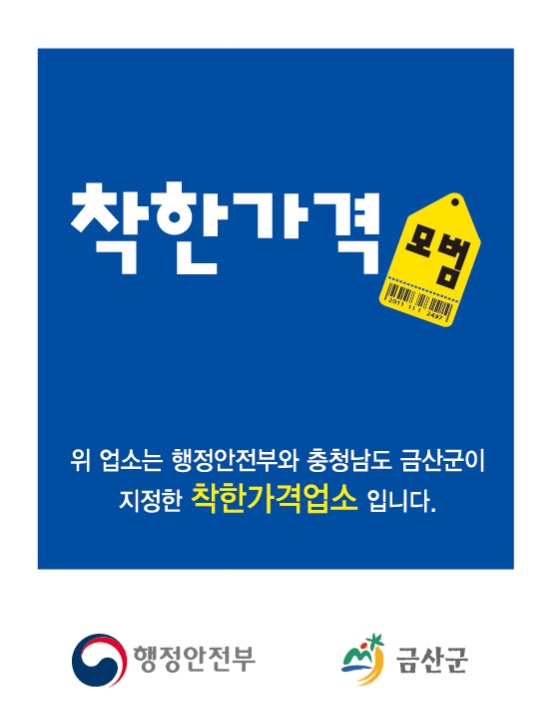 [충청뉴스큐] 금산군은 지역 물가 안정을 도모하고 군민의 생활비 부담을 덜기 위해 오는 11월 30일까지 착한가격업소를 신규 모집한다.