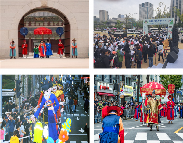 노들섬에서는 어린이 취타대의 전통 공연과 스타 역사 강사 최태성의 역사콘서트가 펼쳐지며 시흥행궁은 의궤 복원과 전통 무예를 선보인다.