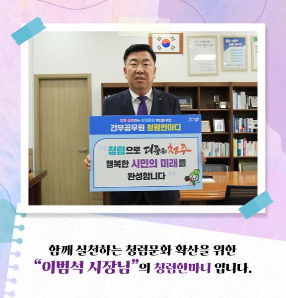 이 시장은 “청렴 한마디 챌린지와 같은 일상적인 노력을 통해 우리 시 모든 공직자들이 청렴에 대한 관심을 높이고 소통과 공감의 청렴 문화를 확산하는 계기가 되기를 기대한다”고 밝혔다.
