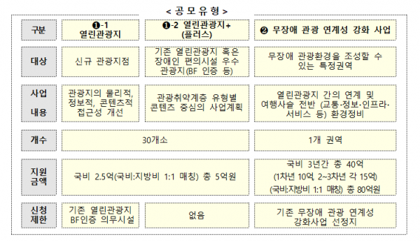 열린관광지와 열린관광지 플러스 선정 대상은 지자체가 신청한 관광지로 총 30개소를 선정한다.