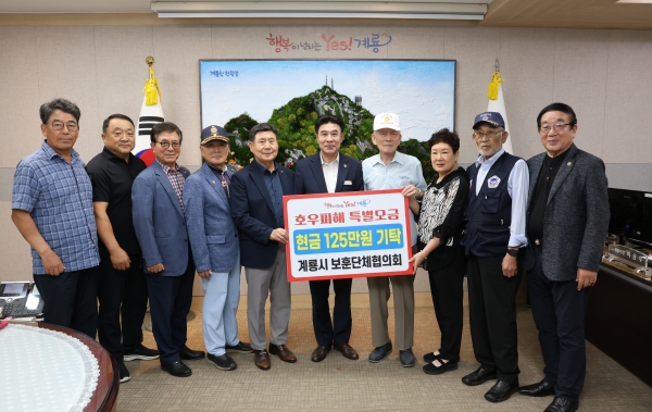 [충청뉴스큐] 계룡시는 1일 계룡시 보훈단체협의회가 호우피해를 입은 지역 주민들을 돕기 위해 성금 125만원을 기탁했다고 밝혔다.