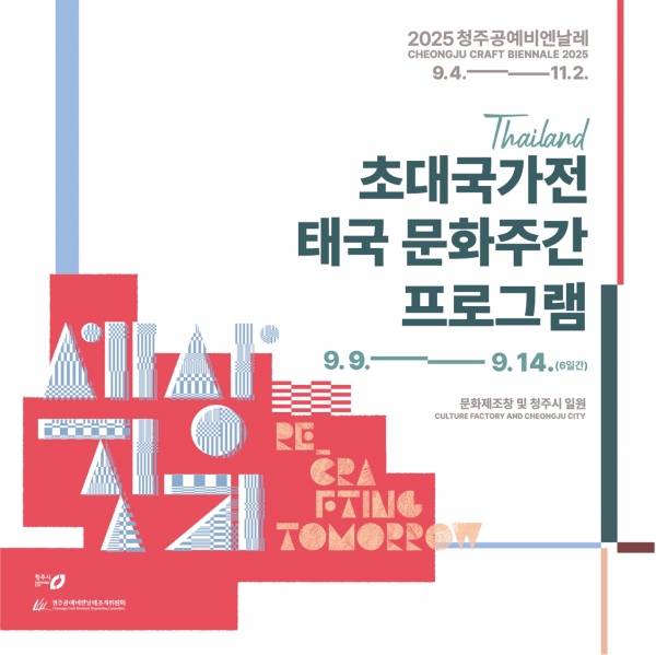 한편 초대국가 태국 전시를 비롯해 본전시, 특별전 등 다양한 전시와 어린이비엔날레, 박물관&미술관&갤러리 연결 짓기, 마켓과 체험 등 다채로운 공예경험들이 기다리고 있는 2025 청주공예비엔날레는 오는 9월 4일 아침 9시 개장식을 시작으로 11월 2일까지 60일간 ‘세상 짓기 Re_Crafting Tomorrow’를 주제로 문화제조창과 청주시 일원에서 열린다.
