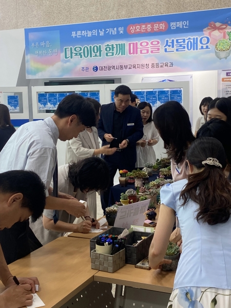 [충청뉴스큐] 대전동부교육지원청은 9월 4일 중등교육과 주관으로 전 직원이 참여하는 푸른하늘의 날 기념 및 상호존중 문화 캠페인을 실시했다고 밝혔다.