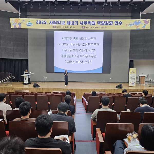 이동춘 학교지원과장은 “이번 연수를 통해 새내기 사무직원들이 학교 현장에서 겪는 어려움을 세심하게 살피고 실질적인 지원을 아끼지 않겠다”며 “사학 행정의 전문성을 높이는 것이 곧 자립과 공존의 기반이 되어 사학 발전을 이끄는 든든한 밑거름이 될 수 있도록 최선을 다하겠다”고 밝혔다.