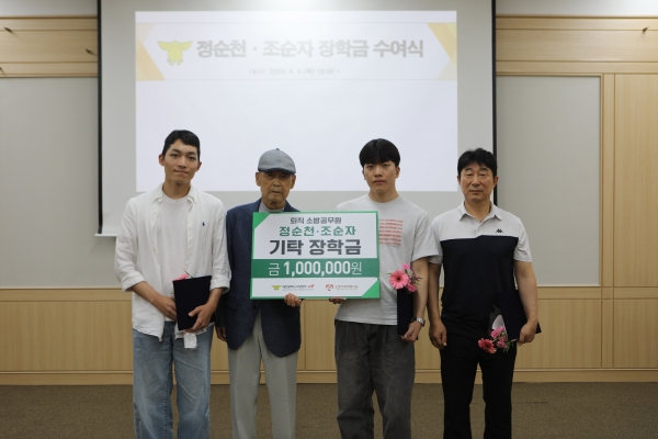 이 장학금은 지난 6월 정순천 전 서부소방서장과 배우자 조순자 여사가 소방 가족 지원을 위해 기부한 1억원으로 마련됐다.