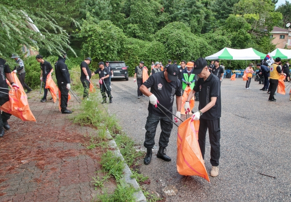 행사는 오전 10시 개회식을 시작으로 국민의례와 축사, 다짐 캠페인 등이 이어지며 이후 도내 특수임무유공자 연합회 60명, 자원봉사자 40명이 함께 환경정화 활동에 나섰다.