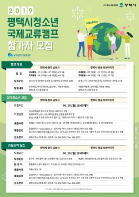 [충청뉴스큐] 평택시는 평택시청소년문화센터와 2019년도 평택시 청소년국제교류캠프 참가자를 오는 10일까지 모집한다.