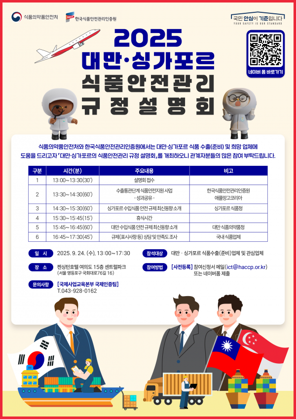 설명회 참여를 희망하는 업체는 한국식품안전관리인증원 누리집에서 9월 22일까지 포스터의 QR 코드를 통해 사전 신청할 수 있다.