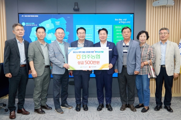 [충청뉴스큐] 아산시는 9일 인주농협 임직원들이 지역 취약계층을 지원하기 위해 성금 500만원을 기부했다고 밝혔다.