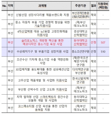 [충청뉴스큐] 부산시는 중소벤처기업부에서 지원하는 ‘2019년 시군구 지역연고산업 육성사업’에 동아대 산학협력단 에코디자인사업단이 최종 선정됐다고 밝혔다.
