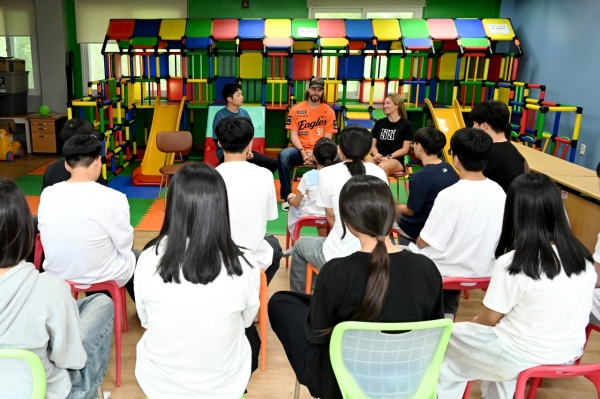 [충청뉴스큐] 대전 중구는 지난 14일 한화이글스 ‘라이언 와이스’ 선수 부부가 아동양육시설인 ‘늘사랑아동센터’에 방문해 입소아동들과 특별한 시간을 함께했다고 밝혔다.