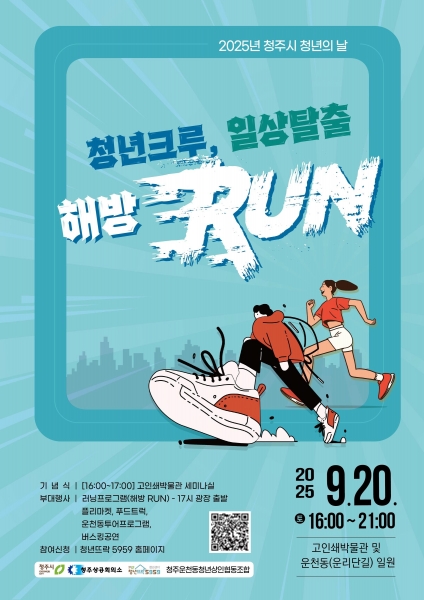 [충청뉴스큐] 청주시는 청년들의 도전과 성장을 응원하기 위한 ‘2025년 청년의 날 기념행사’를 오는 20일 고인쇄박물관 및 운리단길 일원에서 개최한다.