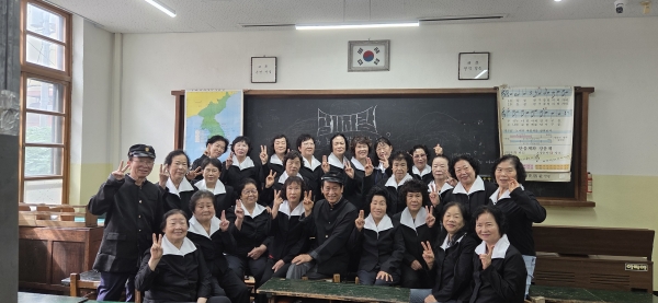 이번 체험학습은 1960~70년대 교실을 재현한 ‘옛 교실’ 전시 공간에서 이루어졌으며 학습자들은 하얀 컬러의 옛 교복을 입고 낮은 책걸상에 앉아 국어·과학 수업을 듣는 등 당시의 교육 환경을 생생하게 경험했다.