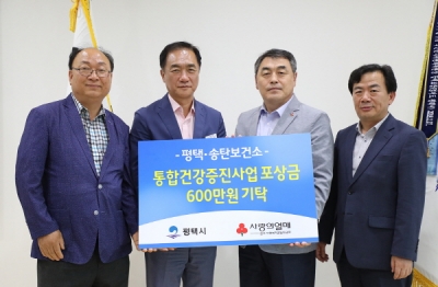 [충청뉴스큐] 평택시는 지역사회 통합건강증진사업 종합부문 우수기관으로 선정되어, 보건복지부 장관 표창 부상으로 주어진 포상금 전액을 평택시 저소득계층 지원 지정 사회복지공동모금회 경기도지회에 지정기탁 기부금을 지난 5일 전달했다.