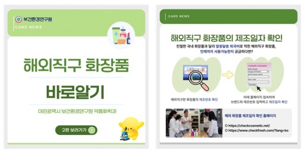 [충청뉴스큐] 대전시 보건환경연구원은 시민 우려가 높은 해외직구 화장품을 대상으로 안전성 검사를 실시한 결과, 조사 대상 대부분이 국내 안전기준에 적합한 것으로 확인됐다고 9월 18일 밝혔다.