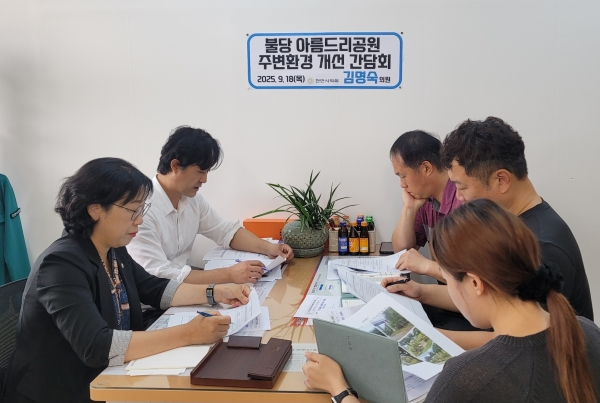 [충청뉴스큐] 천안시의회 김명숙 의원은 9월 18일 오후 3시 의원사무실에서 ‘불당 아름드리공원 주변환경 개선 간담회’를 개최하고 주민 생활환경 개선을 위한 현안 사항을 논의했다.