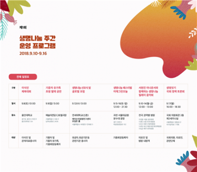 생명나눔 활성화에 기여한 유공자와 유공기관에 대한 표창과 함께 '생명나눔 주간 선포식'및 생명나눔 활성화를 위한 포럼도 실시한다.