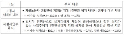 먼저 체불노동자 생활안정 지원을 위해 운영하고 있는 생계비 대부 이자율을 한시적으로 1%p를 인하한다.