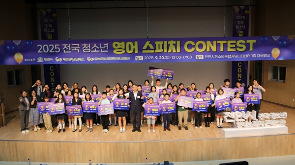 [충청뉴스큐] 천안시는 지난 20일 천안시청소년복합커뮤니티센터에서 ‘2025 전국 청소년 영어 스피치 콘테스트’를 개최했다.