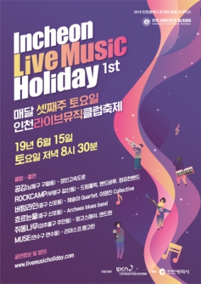 [충청뉴스큐] 인천시는 6월부터 오는 11월까지 매월 셋째 주 토요일 오후 8시 반에 인천의 6개 라이브공연장에서 라이브 음악에 홀리는 날 “Live Music Holiday”를 개최한다고 밝혔다.