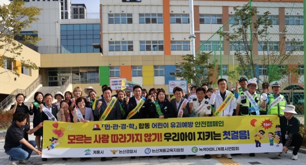 [충청뉴스큐] 계룡시가 24일 두마면 대실초등학교 일원에서 어린이 유괴 예방 합동 캠페인을 실시하고 등하굣길 어린이 안전 확보에 본격 나섰다.