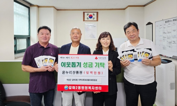 [충청뉴스큐] 대전 서구 갈마2동 행정복지센터는 박상근 갈마2동 지역사회보장협의체 위원장이 온누리상품권 100만원을 기탁했다고 25일 전했다.