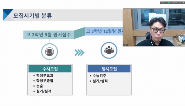 연수는 저녁 7시부터 2시간 동안 ZOOM을 통한 실시간 온라인 방식으로 진행됐으며 경북진학지원단 소속 현직 교사가 강사로 참여했다.