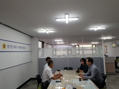 [충청뉴스Q] 기도의회 의정부상담소에서 최경자, 이영봉도의원은 지난 8월 31일 의정부시지회 한국지체장애인협회 최기덕 회장, 의정부시청 장애인시설팀장과 의정부시 가능동에 위치한 지체장애인 작업장 환경개선에 관한 상담을 진행했다.