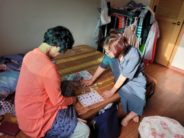 치매안심센터 직원과 당진시 여성단체협의회 회원들은 함께 각 가정을 방문해 따뜻한 말동무와 퍼즐, 색칠공부 등이 포함된 인지강화 꾸러미를 전달하며 환자들의 일상생활 유지와 인지 기능 향상을 응원했다.