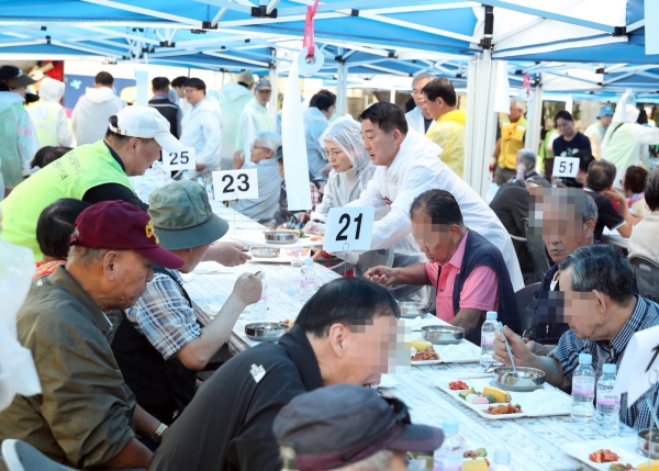 이날 봉사자들은 아침부터 정성스레 준비한 음식을 관내 어르신 400여 분께 대접하고 안부를 물었다.