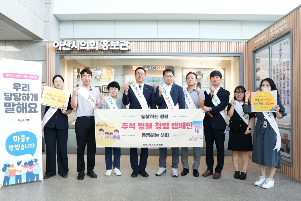 홍성표 의장은 “청렴은 공직자가 반드시 지켜야 할 기본이자 핵심 가치”며 “이번 캠페인을 통해 청렴은 선택이 아닌 모두의 의무임을 다시 한 번 되새기고 시민과 함께하는 신뢰받는 아산시의회를 만들어 가겠다”고 강조했다.