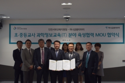 [충청뉴스큐] 인천광역시서부교육지원청은 지난 8일 하나금융그룹 통합데이터센터에서 하나금융티아이와 함께 초·중등교사 과학정보교육 육성 협력 MOU를 체결했다.