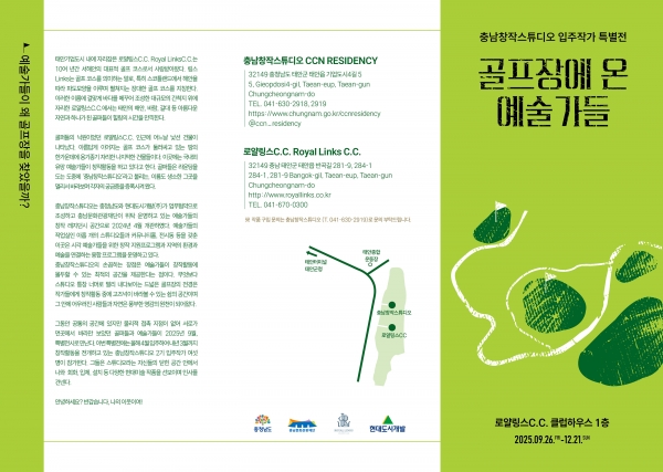 본 전시는 로얄링스CC 클럽하우스 본관에서 무료로 관람 가능하며 자세한 사항은 충남창작스튜디오 홈페이지에서 확인할 수 있다.