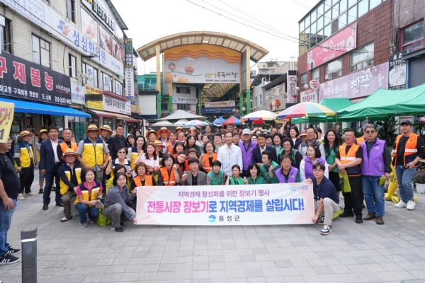 30일 무극시장에서 열린 장보기 행사에는 조병옥 군수, 금왕읍이장협의회, 금왕읍새마을지도자·부녀회협의회, 금왕읍주민자치회, 음성군청 공무원 등 100여명이 참여했다.
